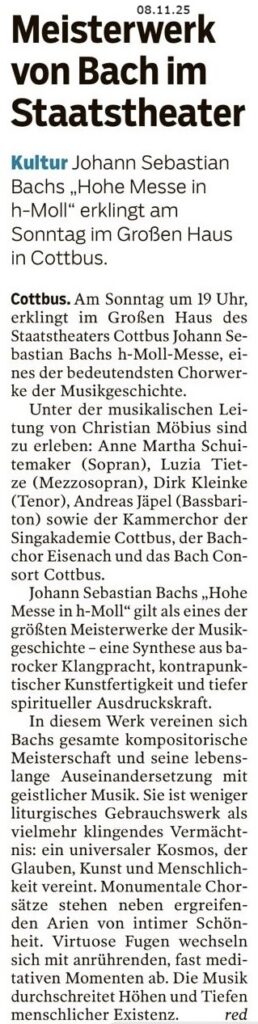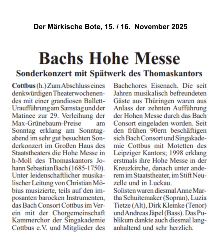 Kammerchor der Singakademie Cottbus, Bachchor Eisenach, Kinder-und Jugendchor des Staatstheater Cottbus, Solisten und Bach Consort Cottbus auf der Bühne